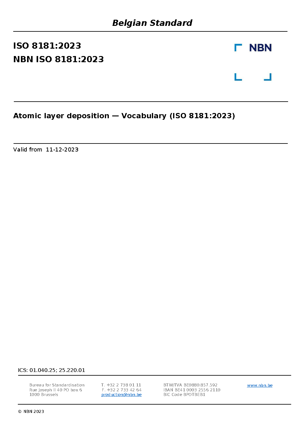 | Publisher | Bureau de Normalisation Belge (NBN) |