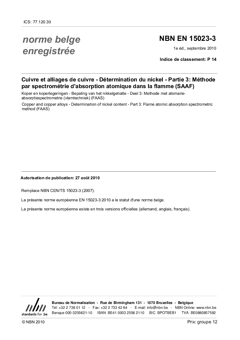 | Publisher | Bureau de Normalisation Belge (NBN) |