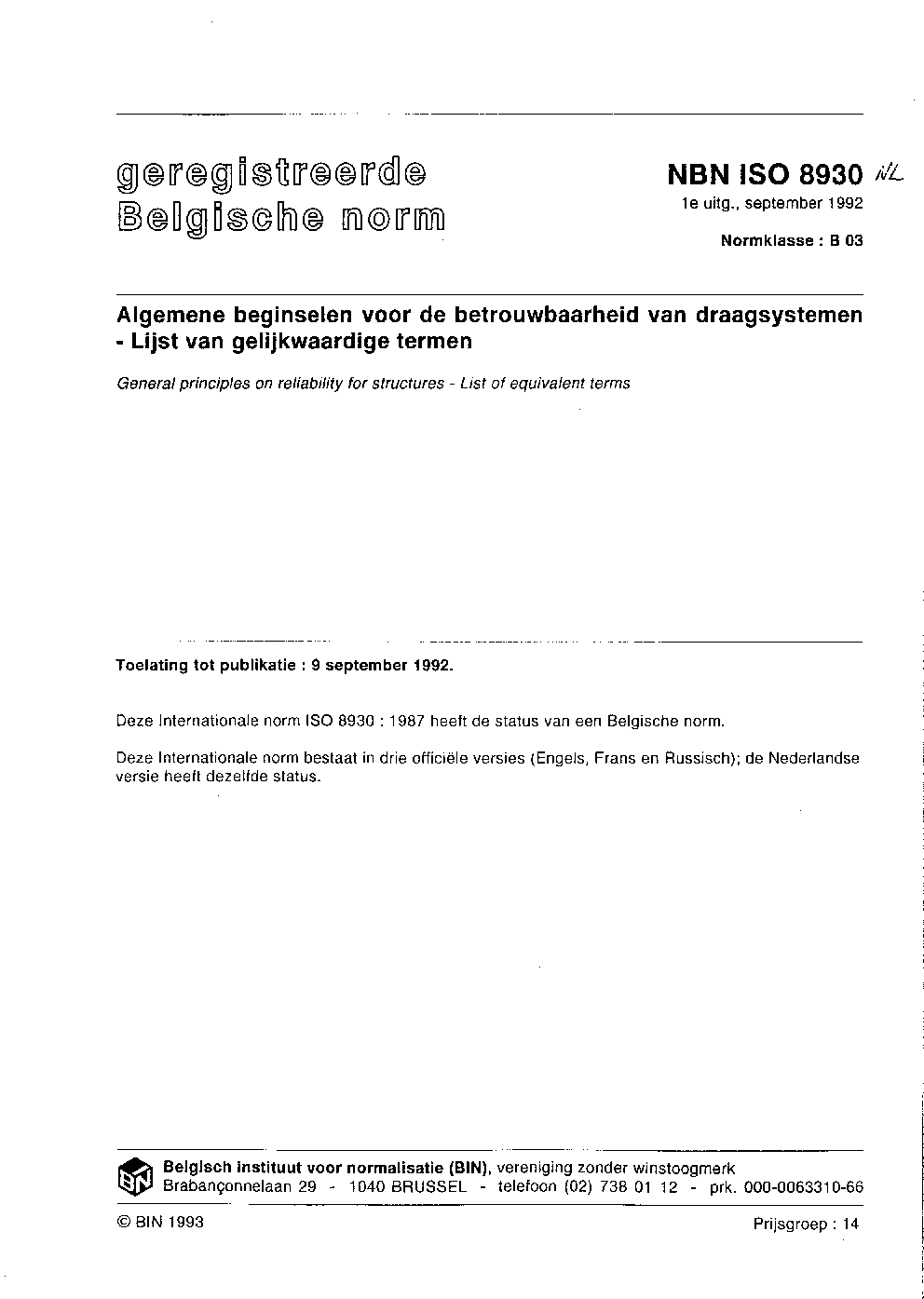 | Publisher | Bureau de Normalisation Belge (NBN) |
