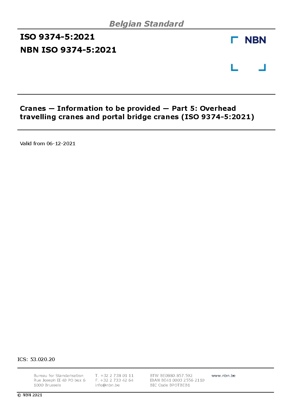 | Publisher | Bureau de Normalisation Belge (NBN) |