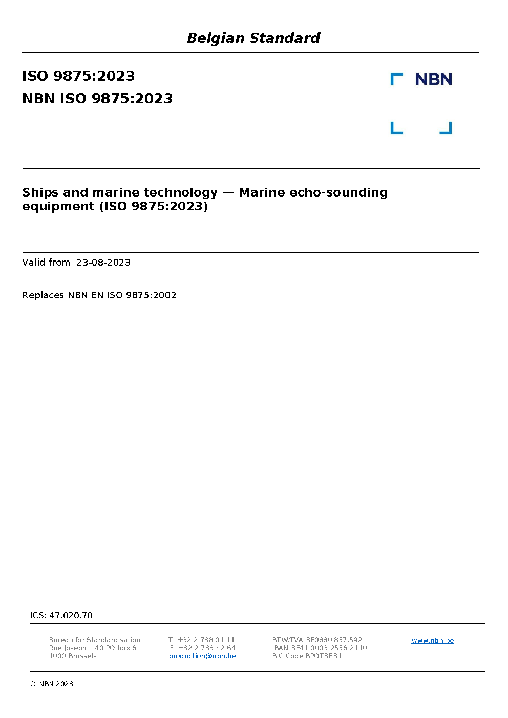 | Publisher | Bureau de Normalisation Belge (NBN) |
