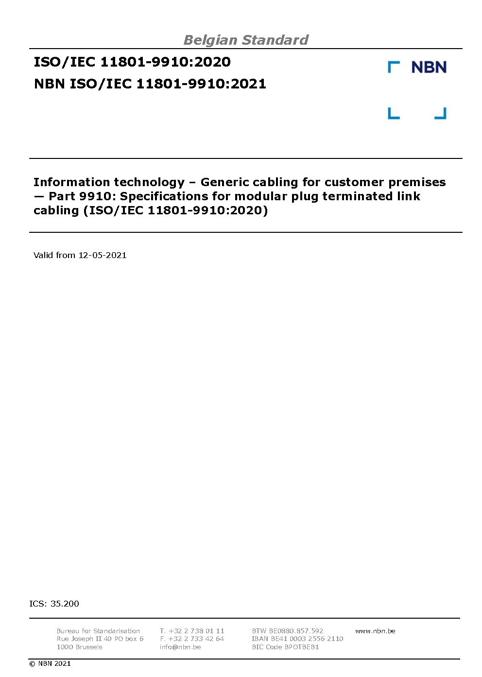 NBN ISO/IEC 11801-9910:2021