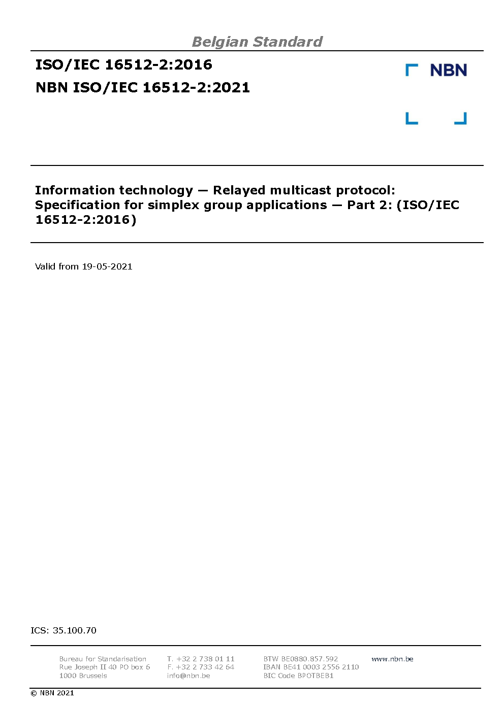 | Publisher | Bureau de Normalisation Belge (NBN) |