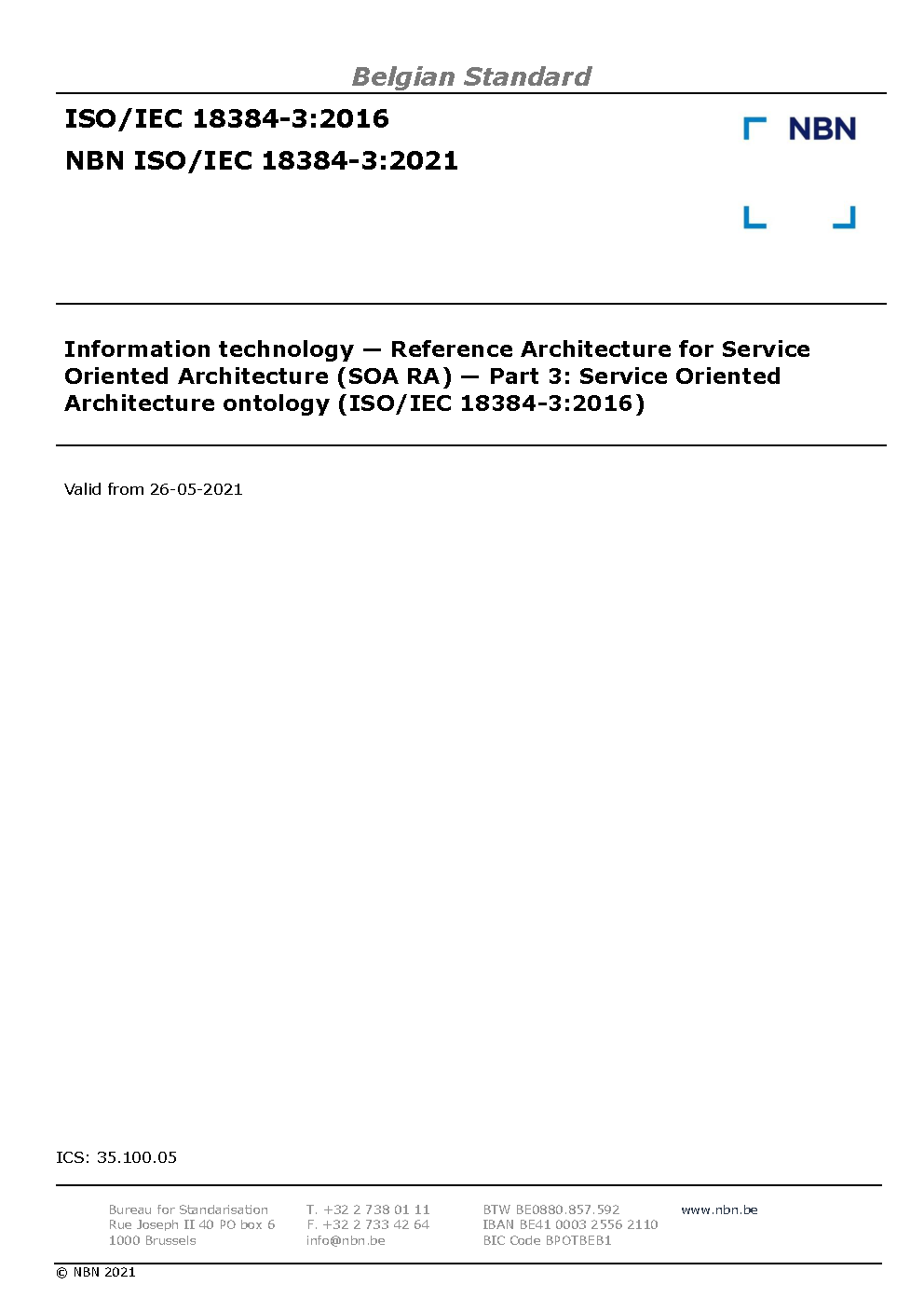 | Publisher | Bureau de Normalisation Belge (NBN) |