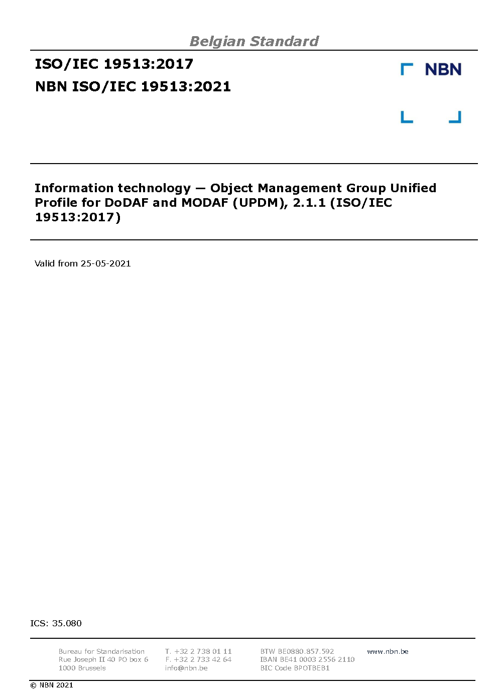 | Publisher | Bureau de Normalisation Belge (NBN) |