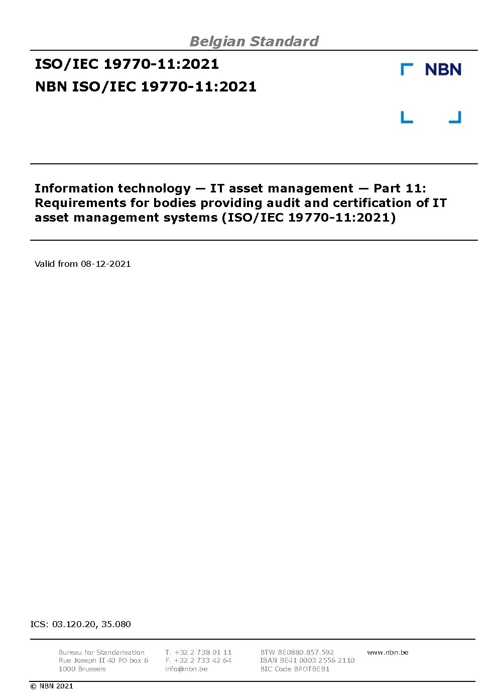 | Publisher | Bureau de Normalisation Belge (NBN) |