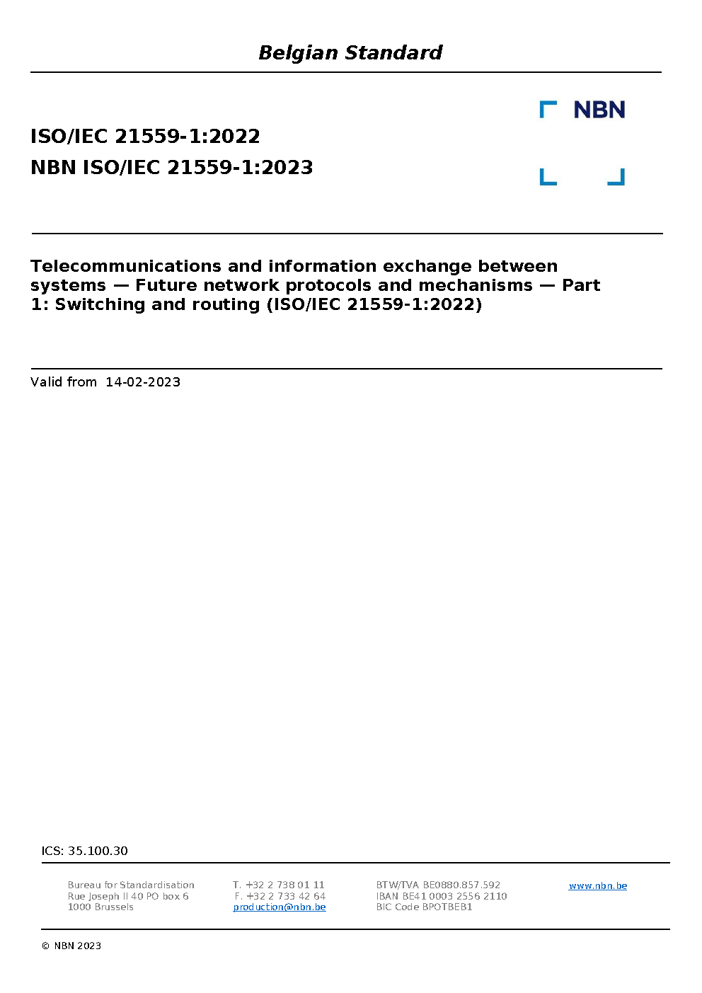 | Publisher | Bureau de Normalisation Belge (NBN) |