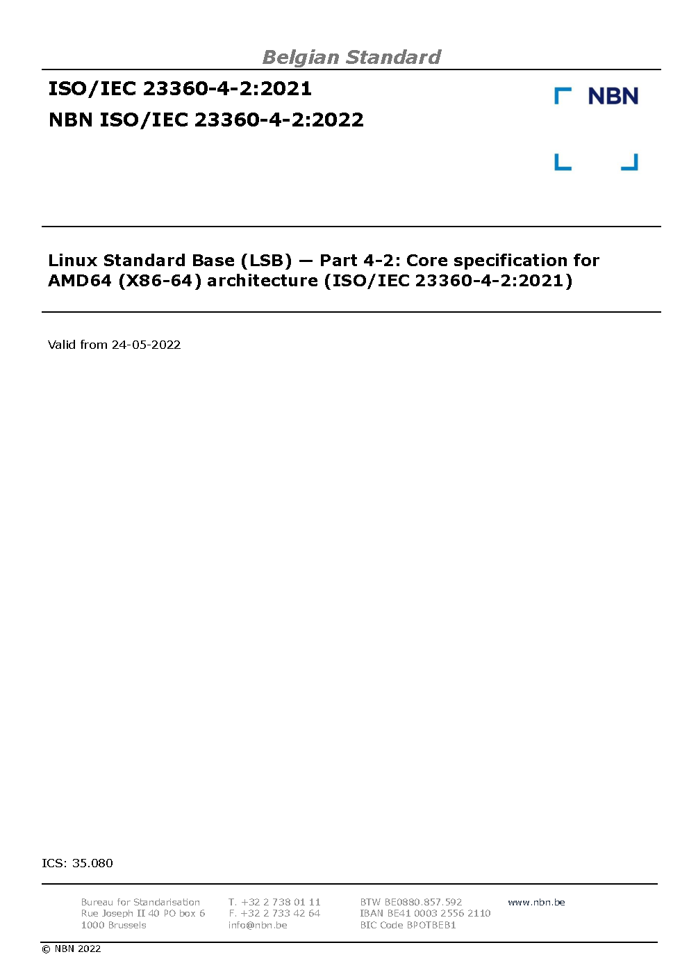 | Publisher | Bureau de Normalisation Belge (NBN) |