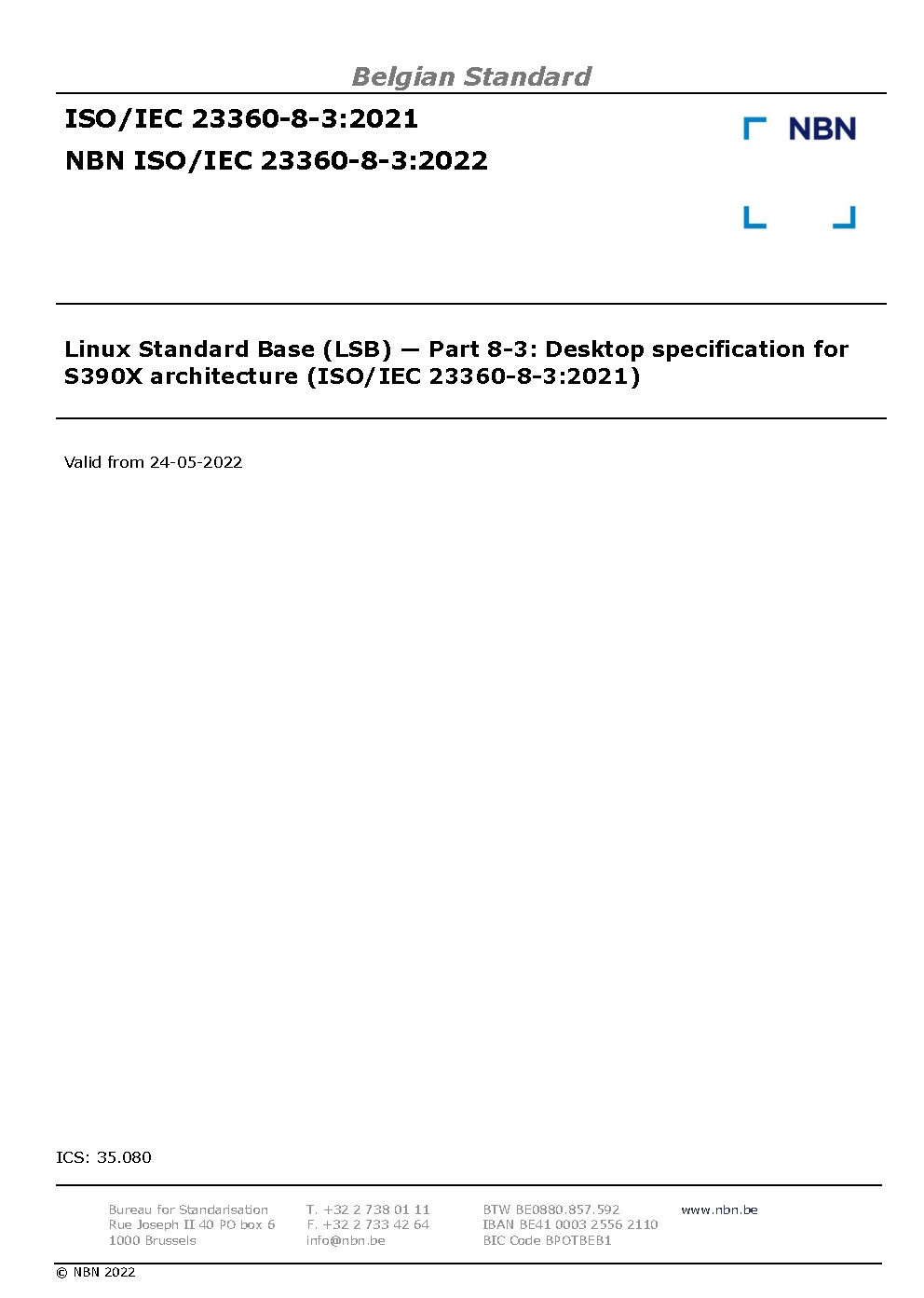 | Publisher | Bureau de Normalisation Belge (NBN) |