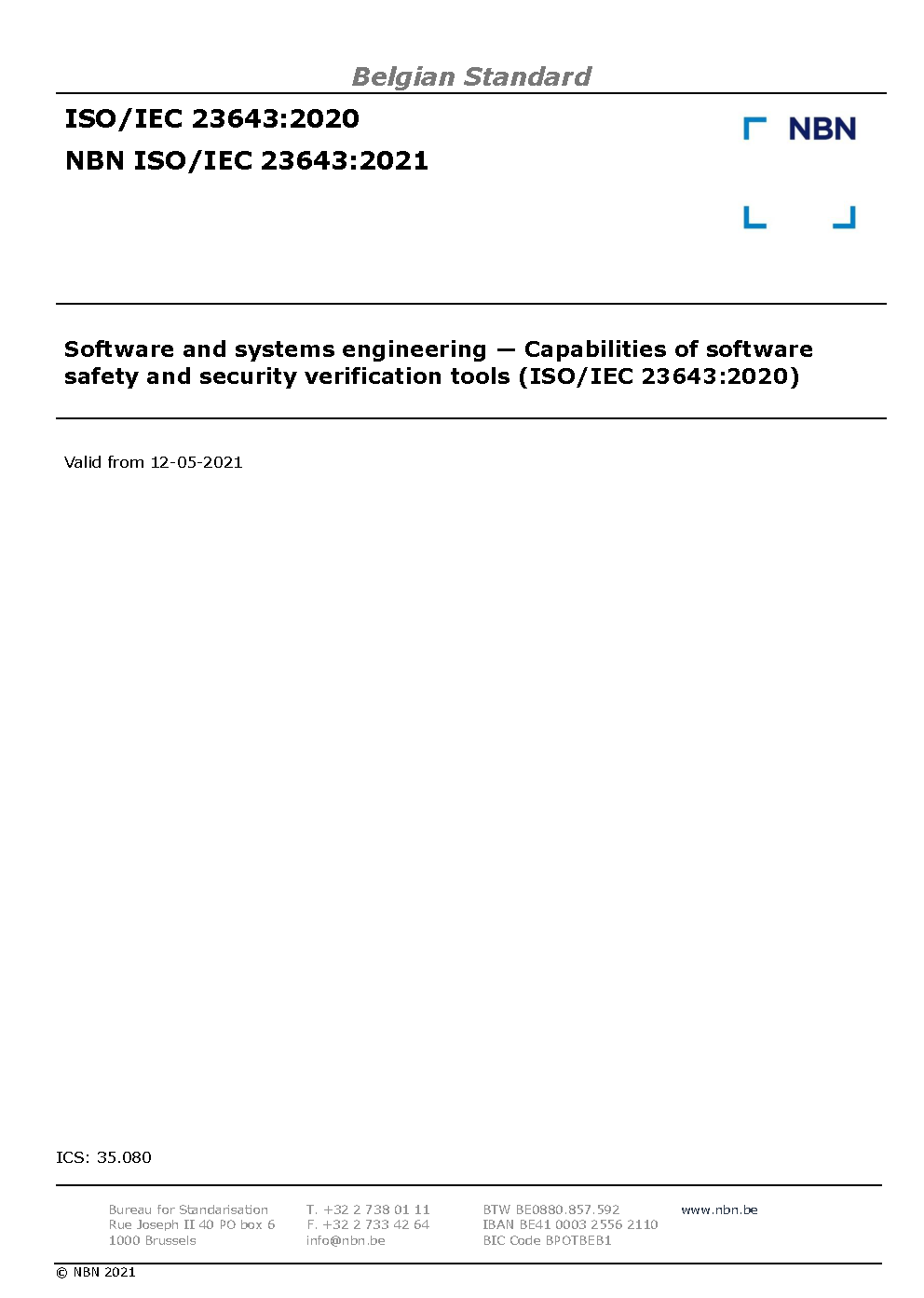 | Publisher | Bureau de Normalisation Belge (NBN) |