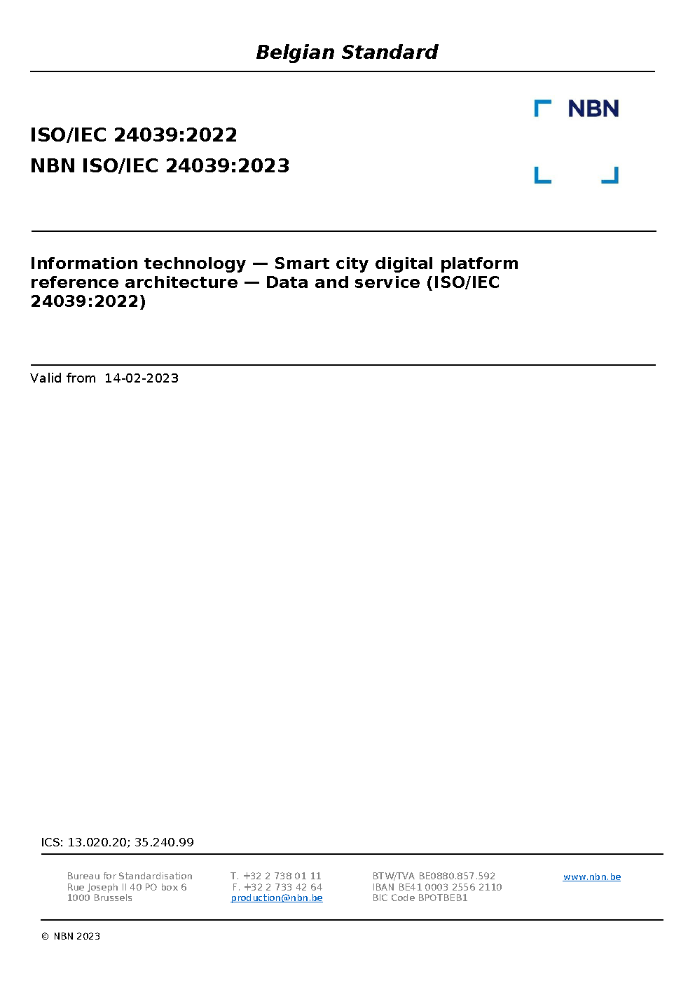 | Publisher | Bureau de Normalisation Belge (NBN) |