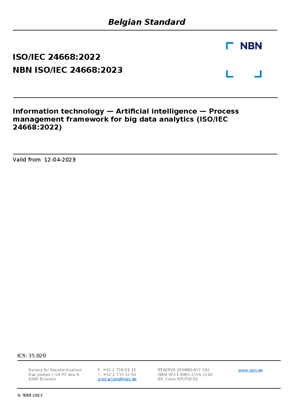 | Publisher | Bureau de Normalisation Belge (NBN) |