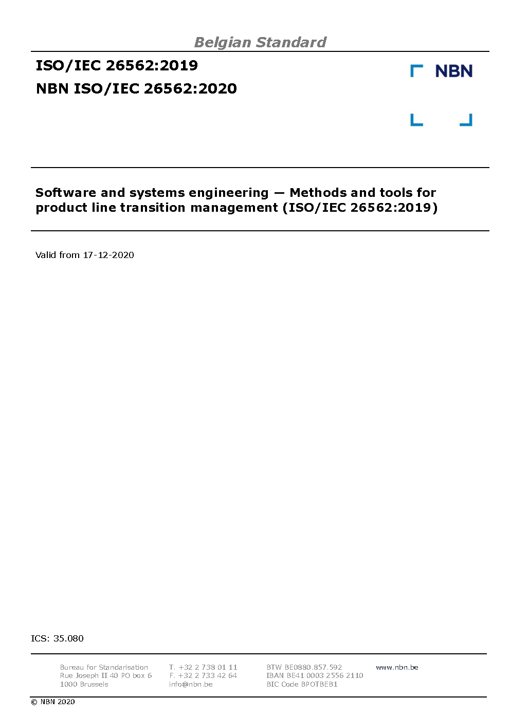 | Publisher | Bureau de Normalisation Belge (NBN) |