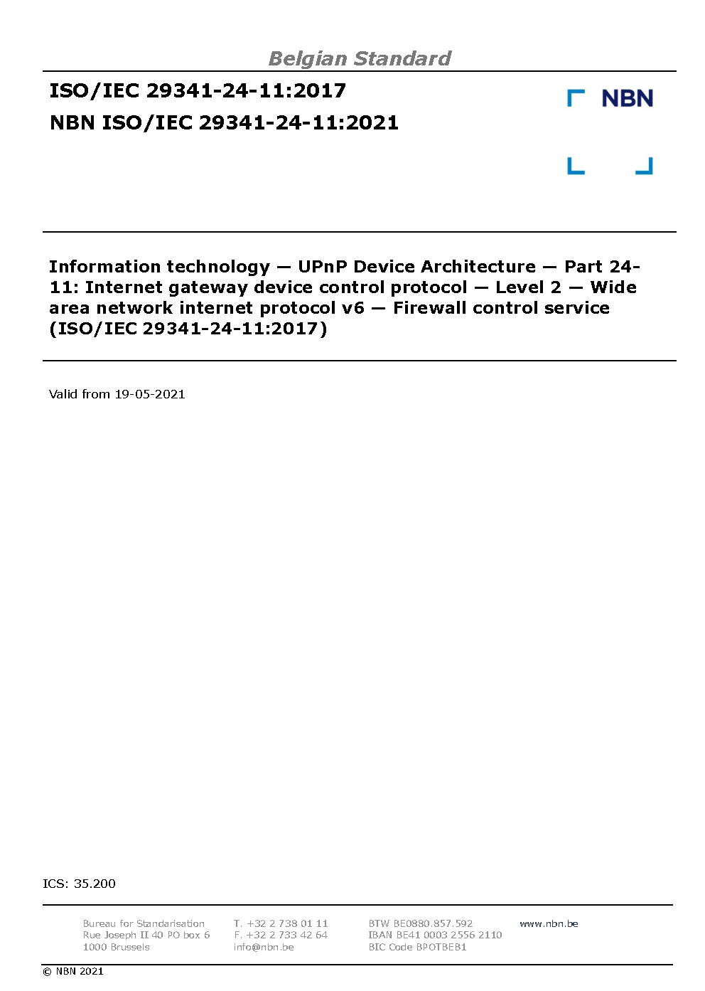 | Publisher | Bureau de Normalisation Belge (NBN) |