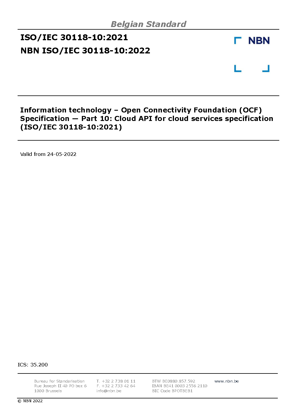 | Publisher | Bureau de Normalisation Belge (NBN) |