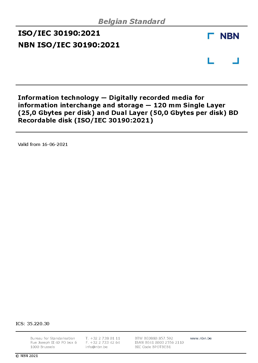 | Publisher | Bureau de Normalisation Belge (NBN) |