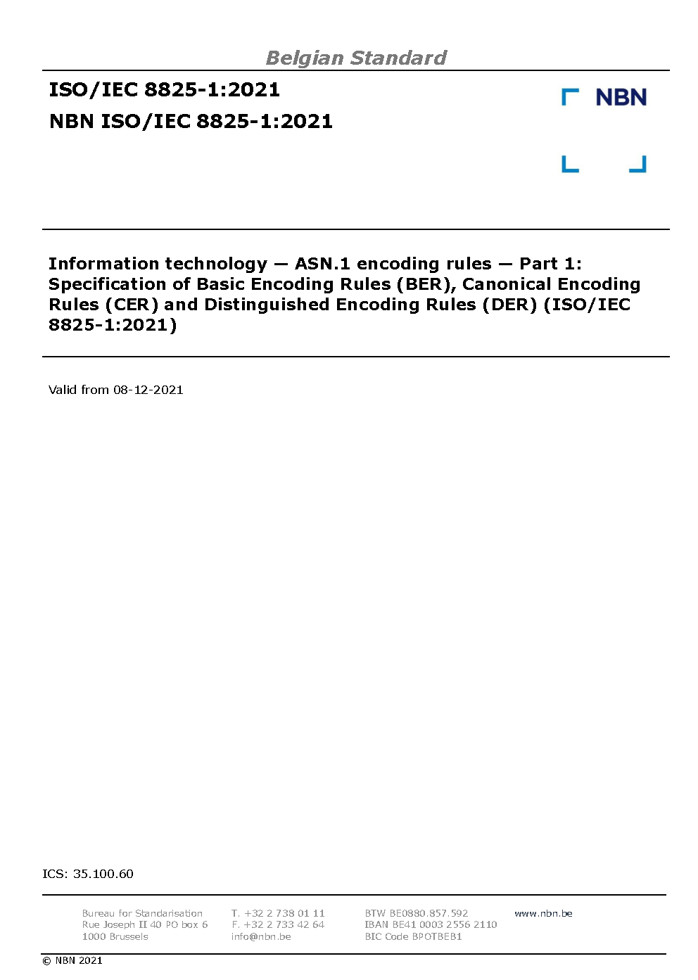 | Publisher | Bureau de Normalisation Belge (NBN) |