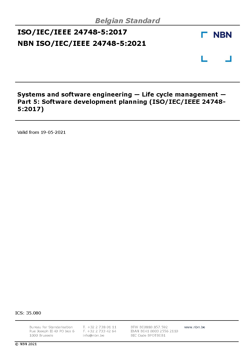 | Publisher | Bureau de Normalisation Belge (NBN) |