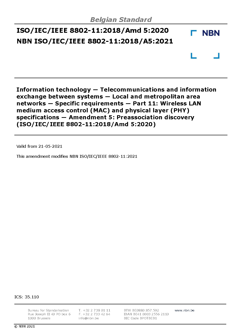 NBN ISO/IEC/IEEE 8802-11:2018/A5:2021