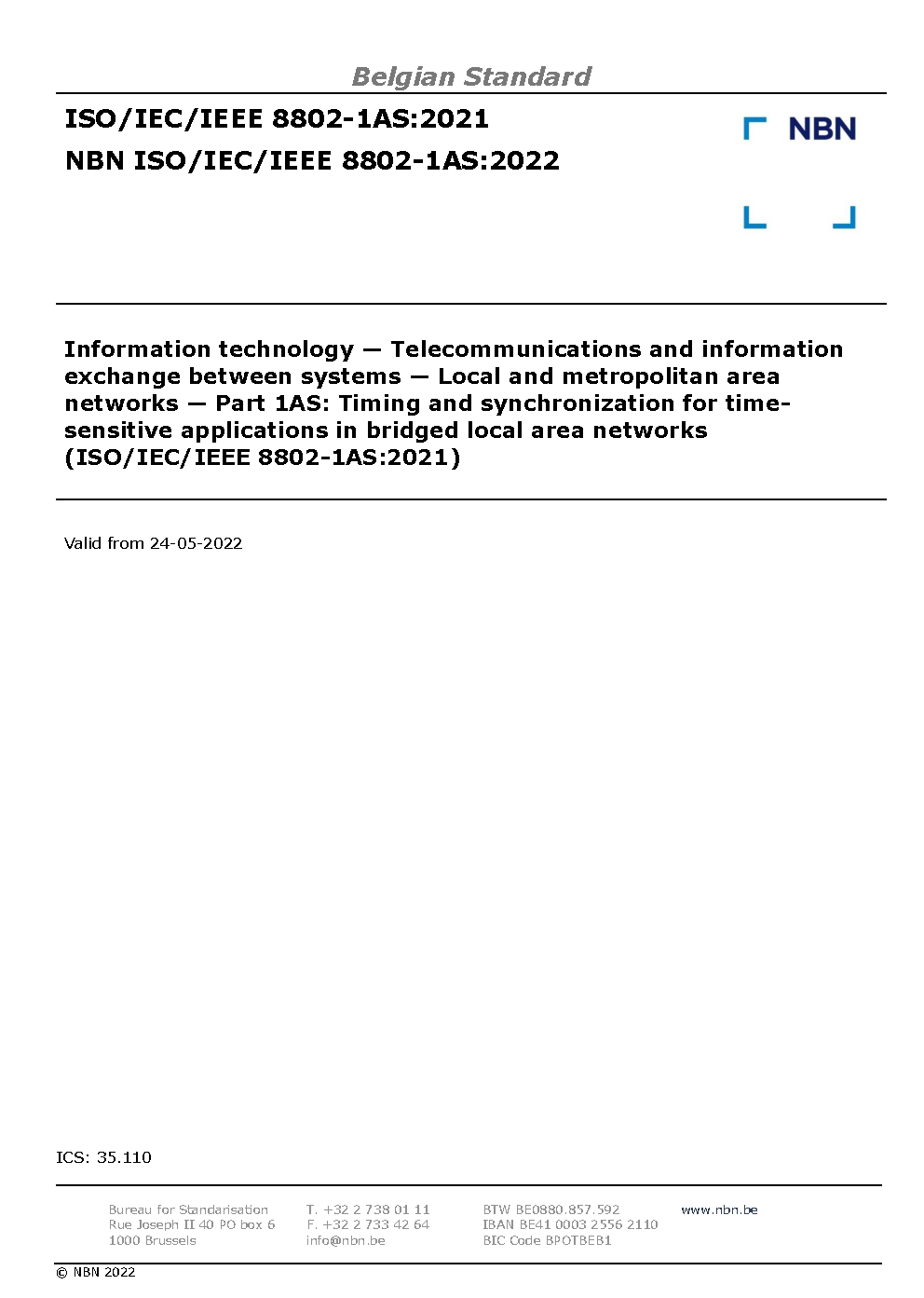 | Publisher | Bureau de Normalisation Belge (NBN) |