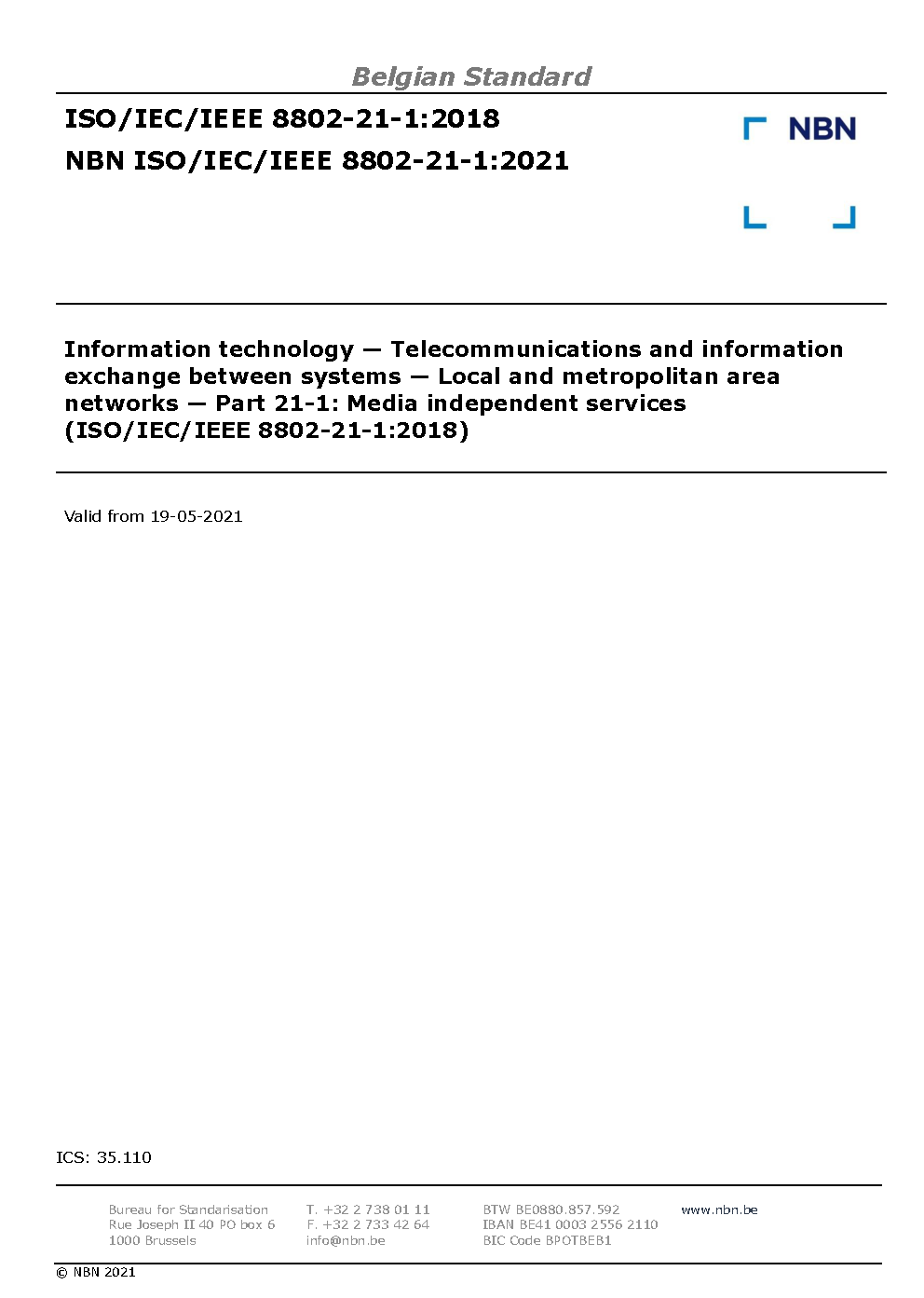NBN ISO/IEC/IEEE 8802-21-1:2021