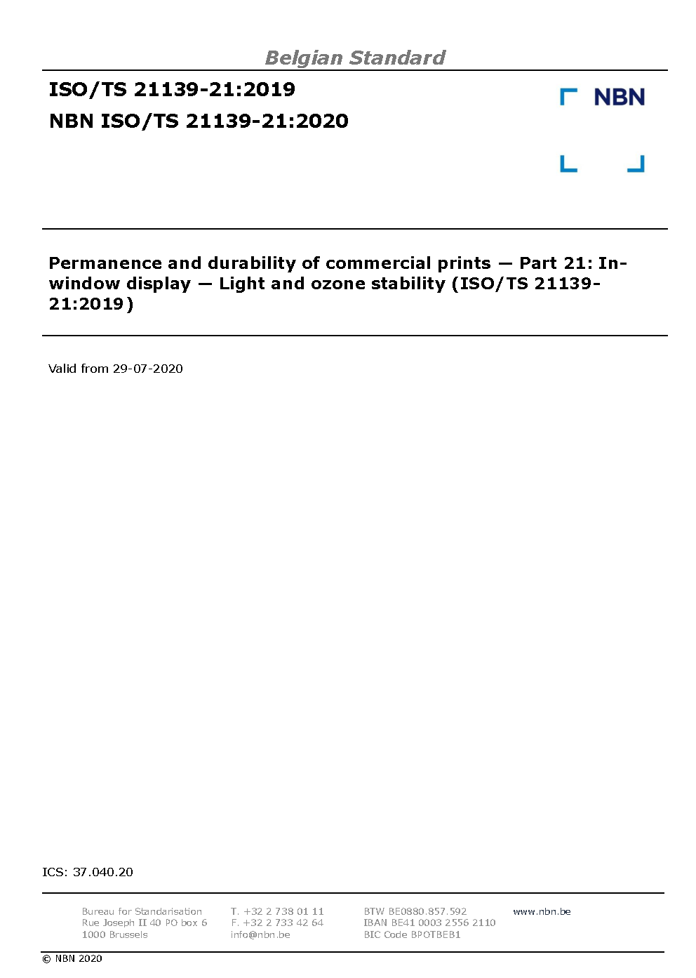 | Publisher | Bureau de Normalisation Belge (NBN) |