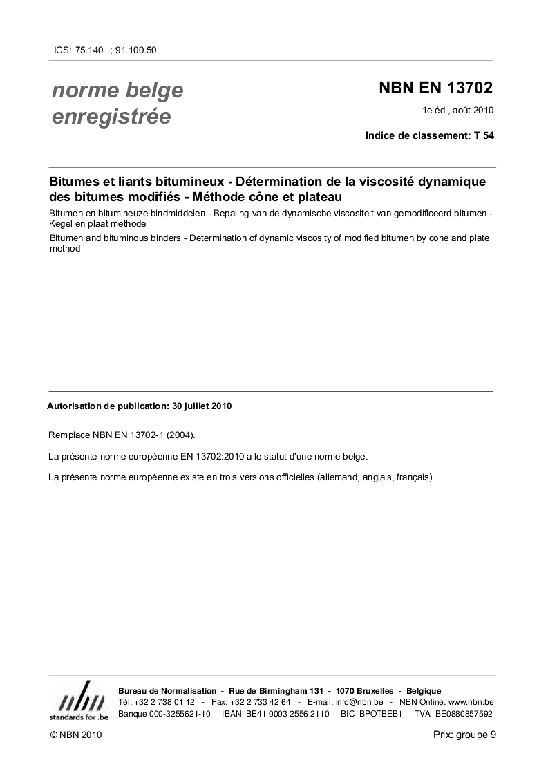 | Publisher | Bureau de Normalisation Belge (NBN) |
