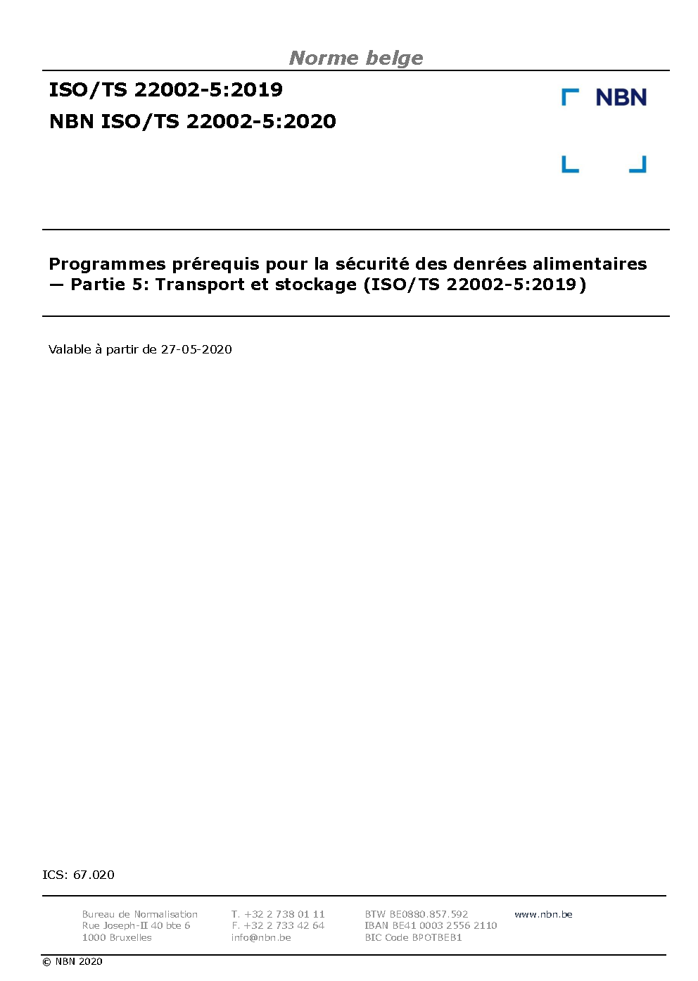 NBN ISO/TS 22002-5:2020