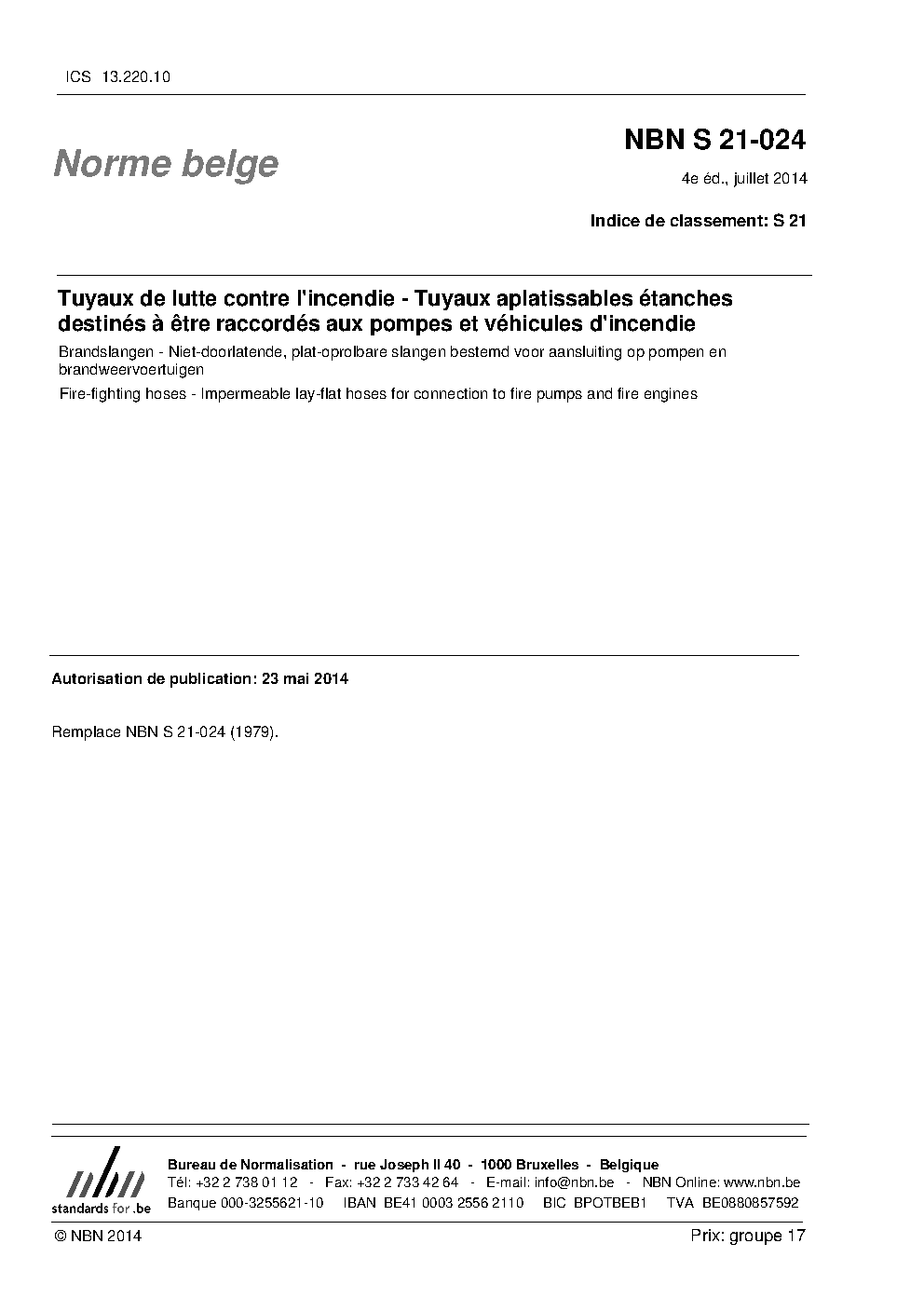 | Publisher | Bureau de Normalisation Belge (NBN) |