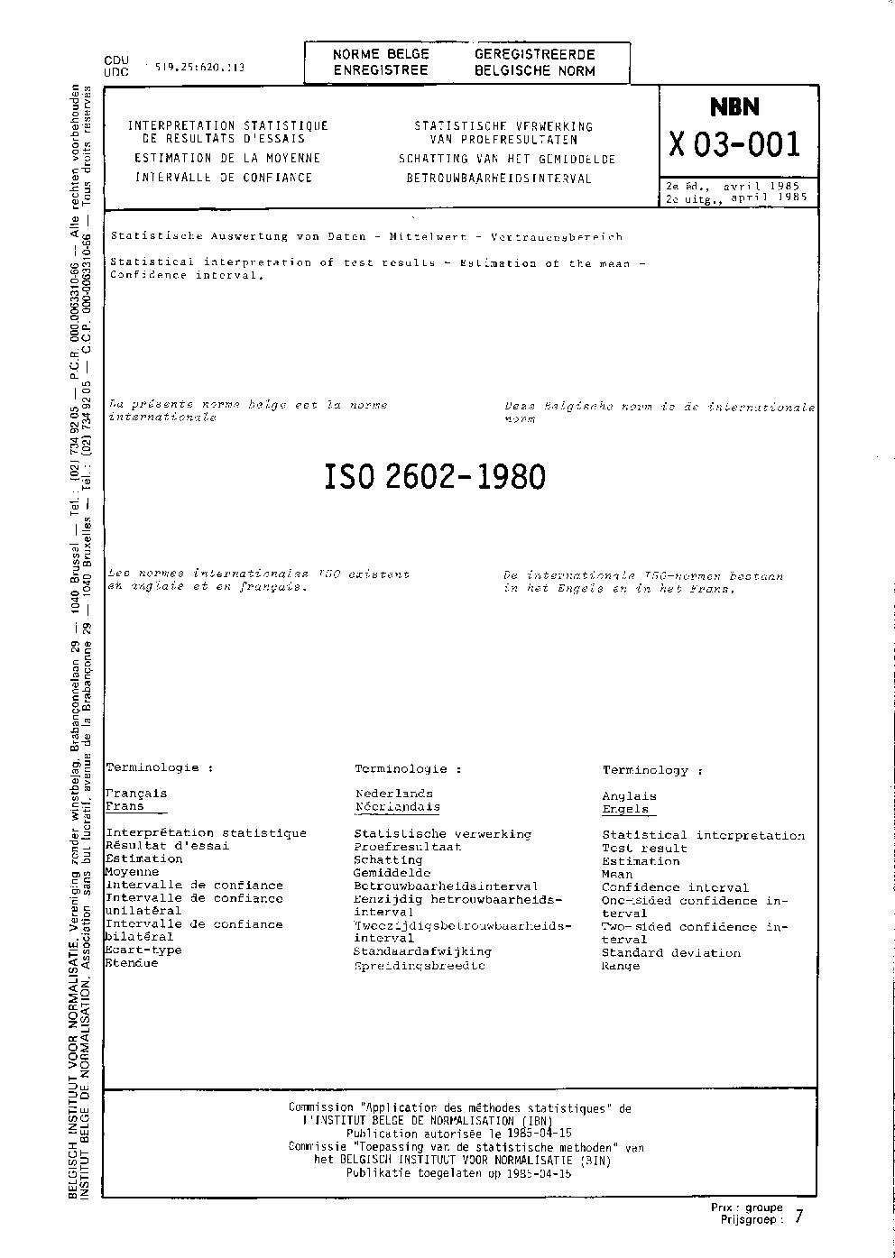 | Publisher | Bureau de Normalisation Belge (NBN) |