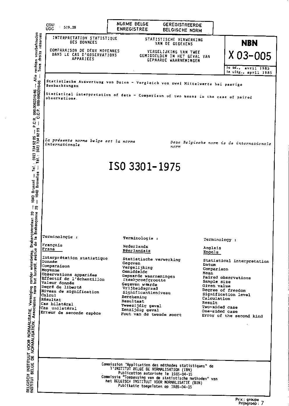 | Publisher | Bureau de Normalisation Belge (NBN) |
