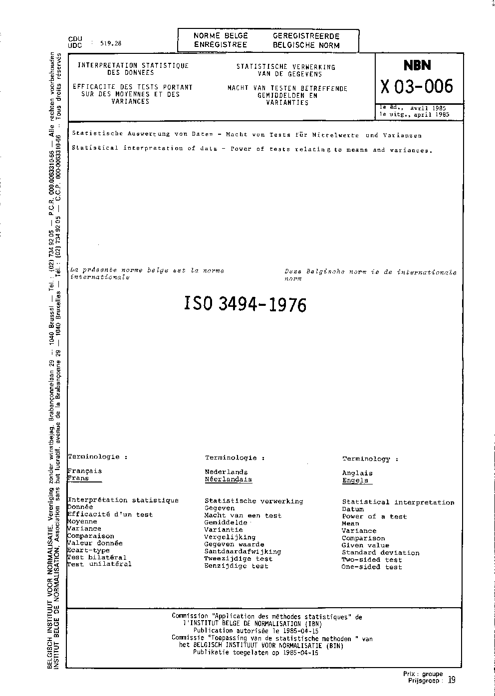 | Publisher | Bureau de Normalisation Belge (NBN) |
