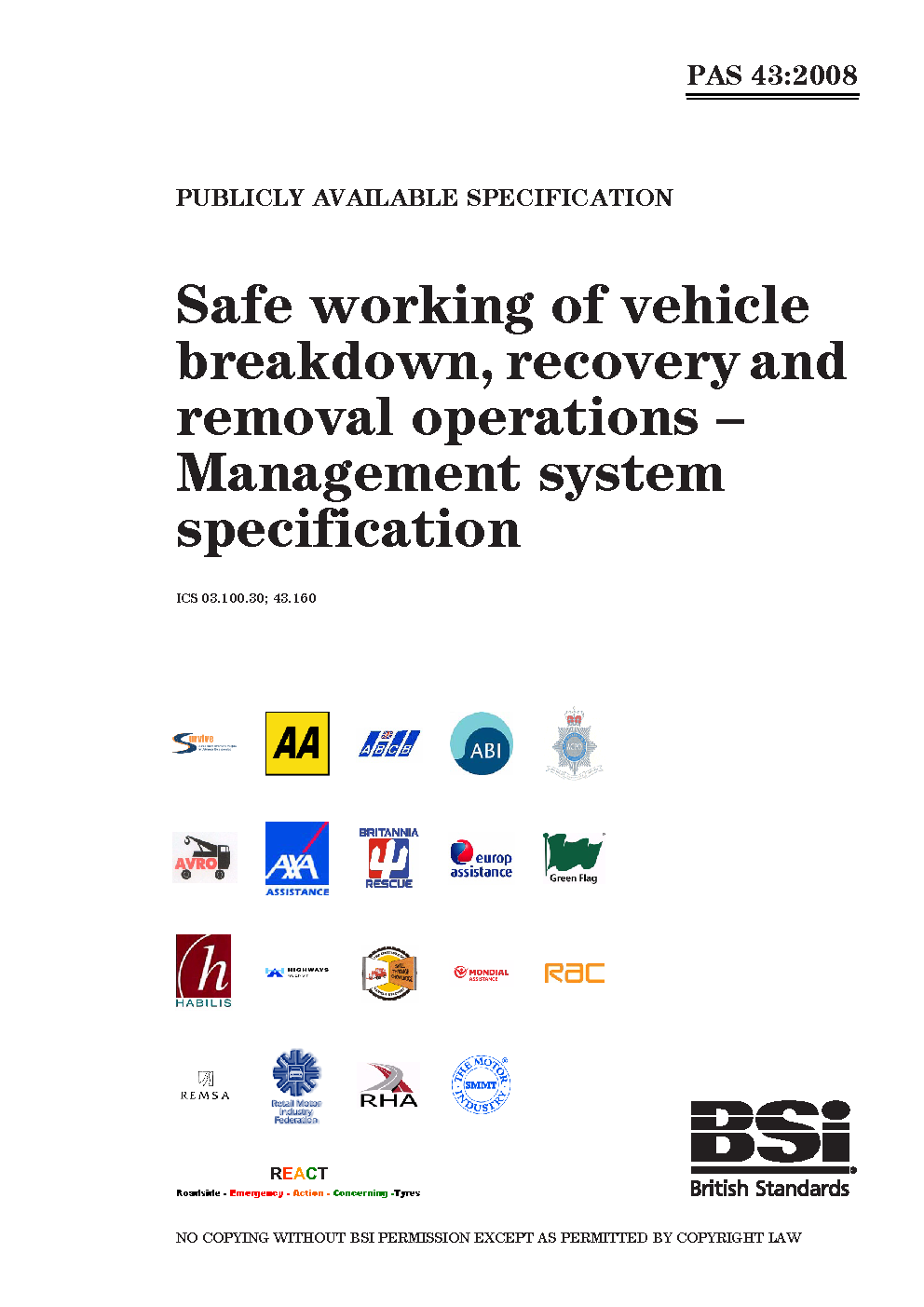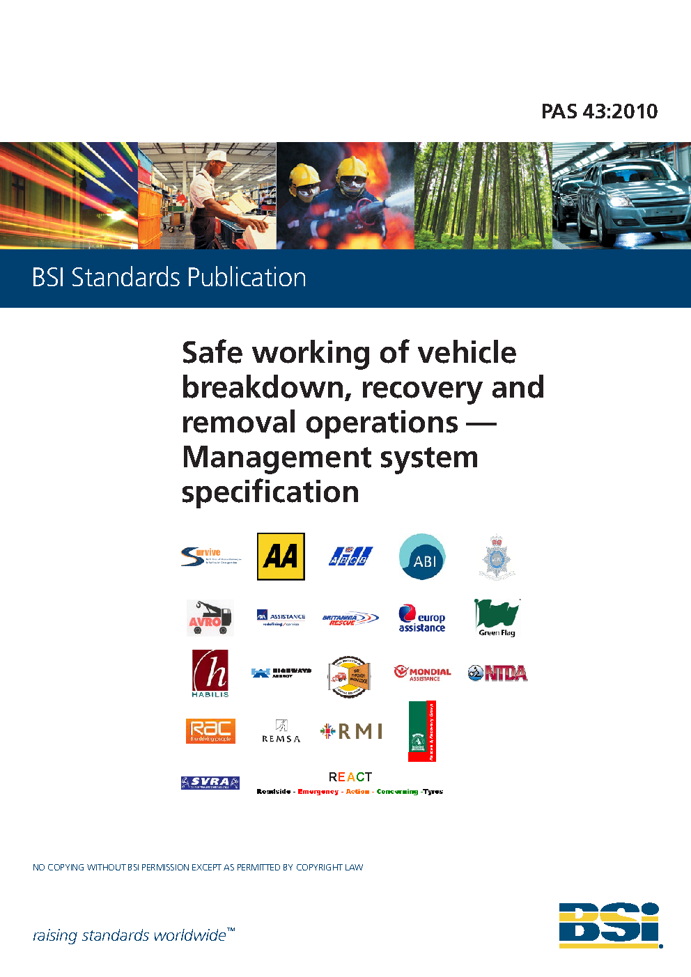 Safe working of vehicle breakdown, recovery and removal operations. Management system specification