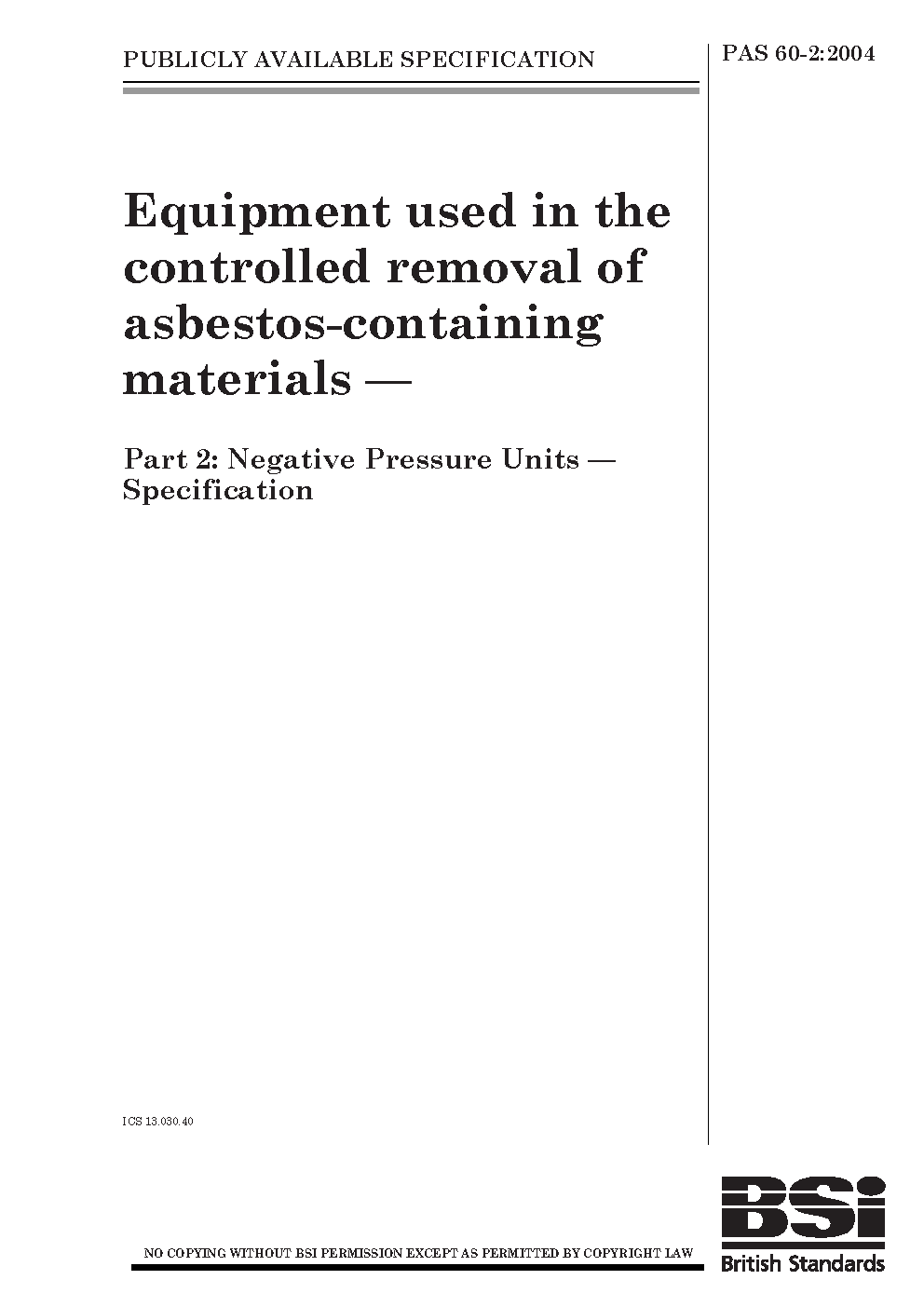 Equipment used in the controlled removal of asbestos-containing materials Negative Pressure Units. Specification