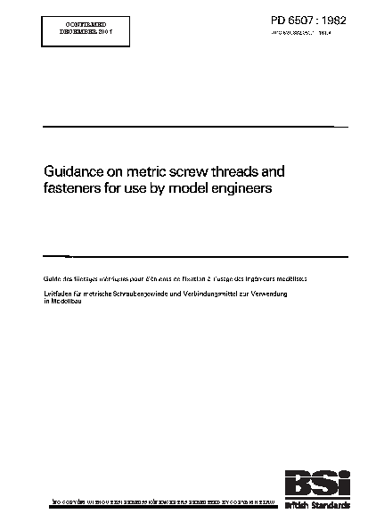 Guidance on metric screw threads and fasteners for use by model engineers