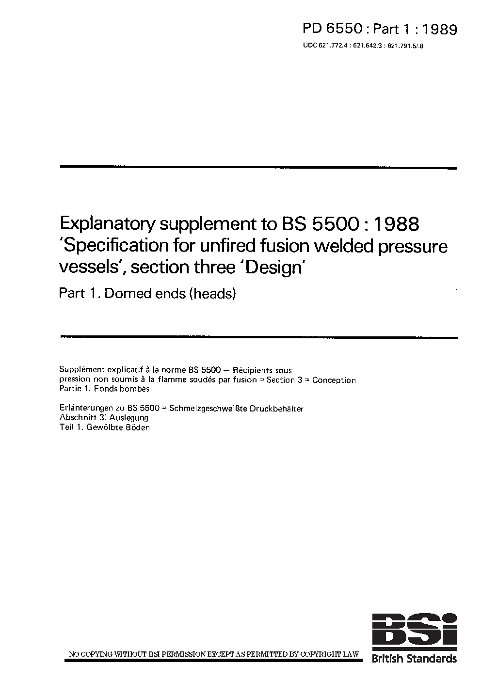 Explanatory supplement to BS 5500:1988. Specification for unfired fusion welded pressure vessels. Section three. Design Domed ends (heads)