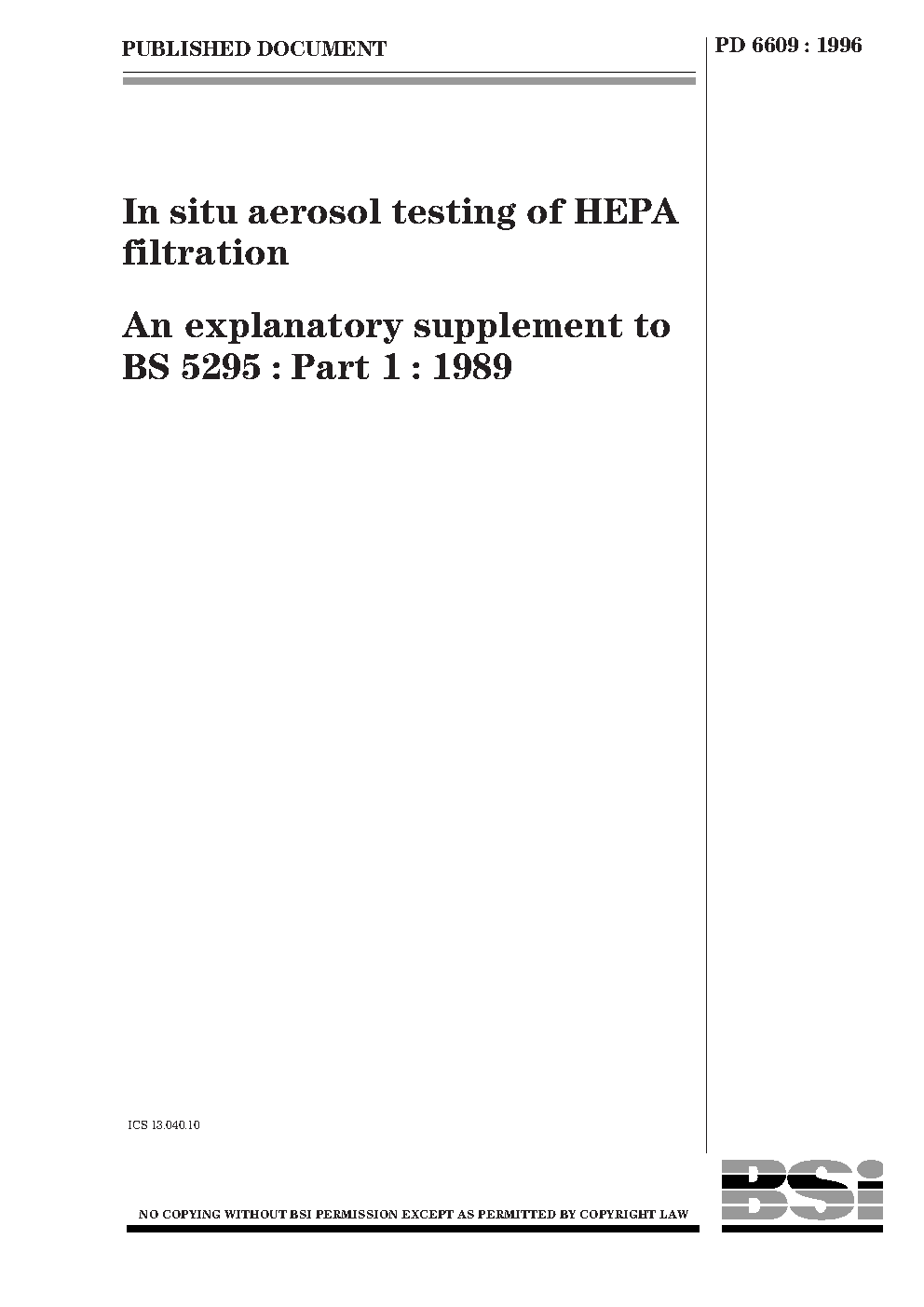 Environmental cleanliness in enclosed spaces. Guide to in situ high efficiency filter leak testing