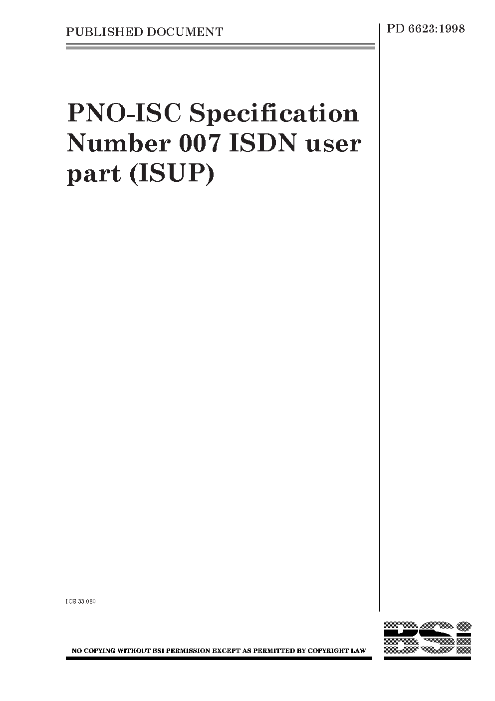 PNO-ISC specification number 007. ISDN user part (ISUP)