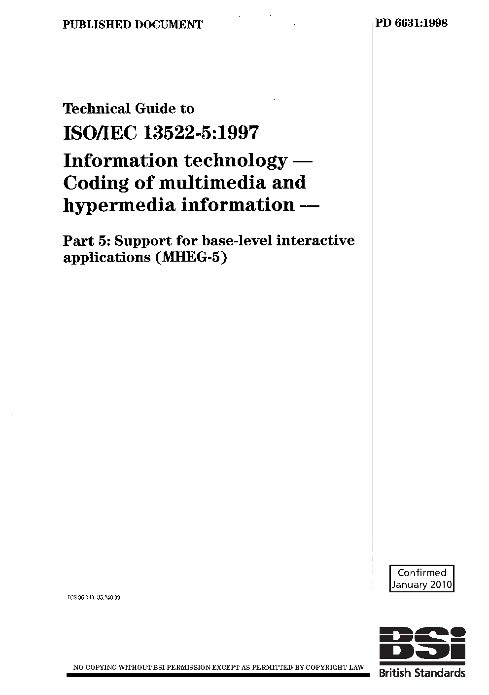 Technical guide to ISO/IEC 13522-5:1997. Information technology. Coding of multimedia and hypermedia information. Support for base-level interactive applications (MHEG-5)