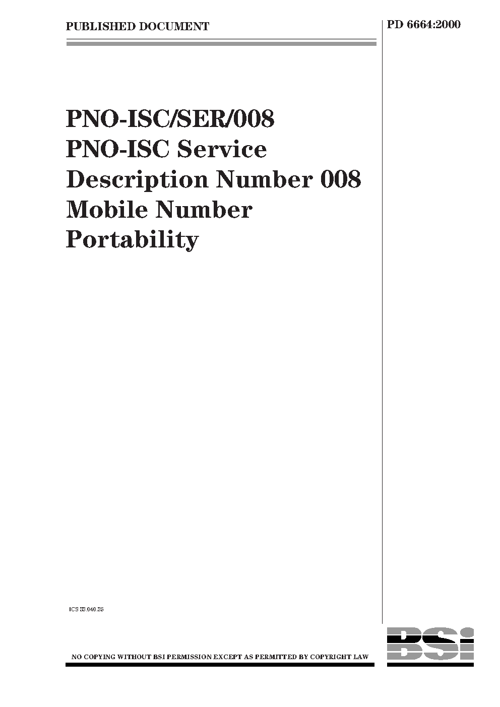 PNO-ISC/SER/008. PNO-ISC service description number 008. Mobile number portability