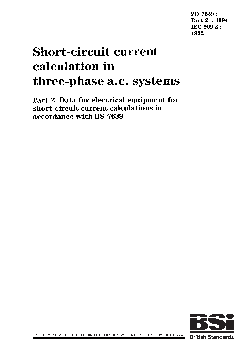 Short-circuit current calculation in three-phase a.c. systems Data for electrical equipment short-circuit calculations accordance with BS 7639