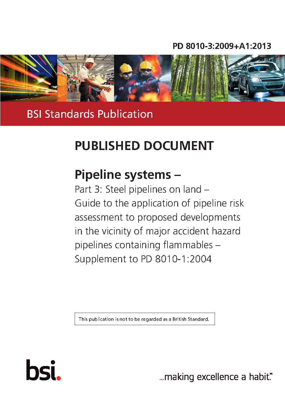 Pipeline systems Steel pipelines on land. Guide to the application of pipeline risk assessment proposed developments in vicinity major accident hazard containing flammables. Supplement PD 8010-1:2004