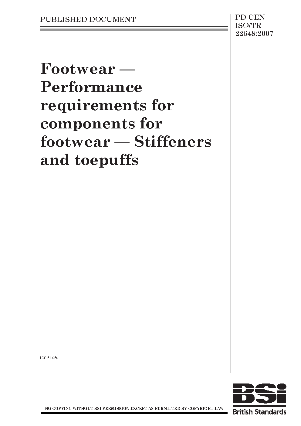 Footwear. Performance requirements for components for footwear. Stiffeners and toepuffs