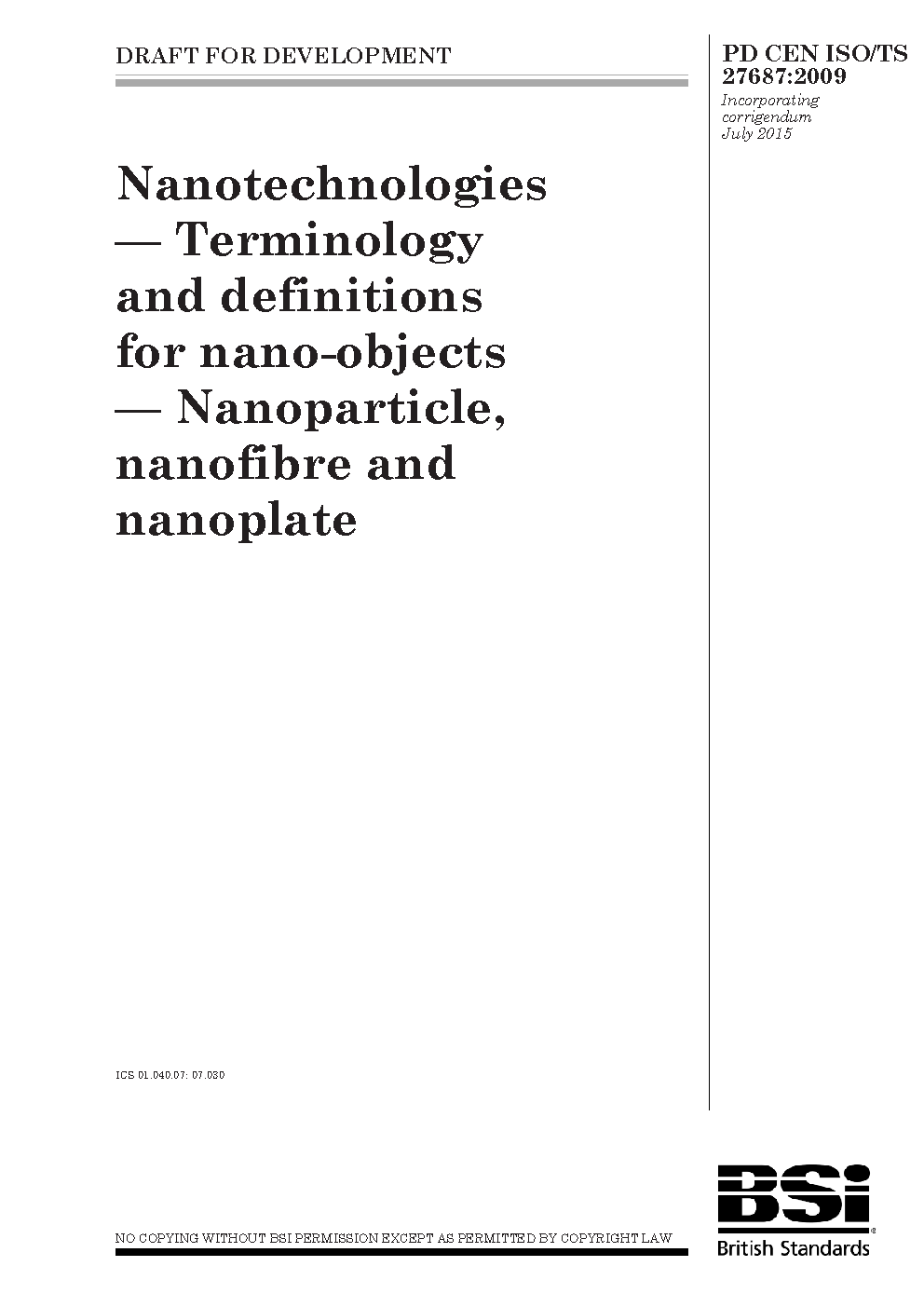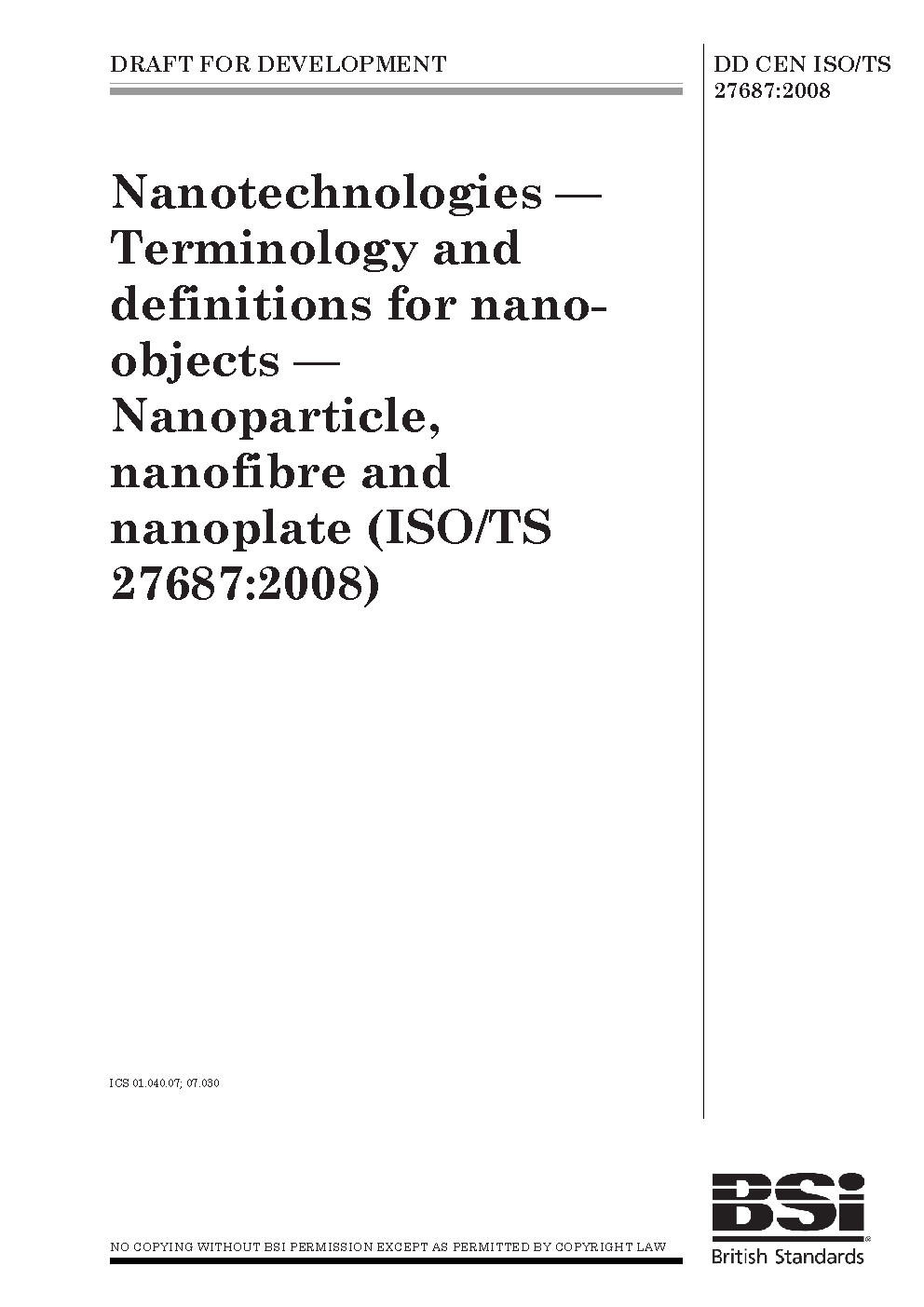 Nanotechnologies. Terminology and definitions for nano-objects. Nanoparticle, nanofibre and nanoplate