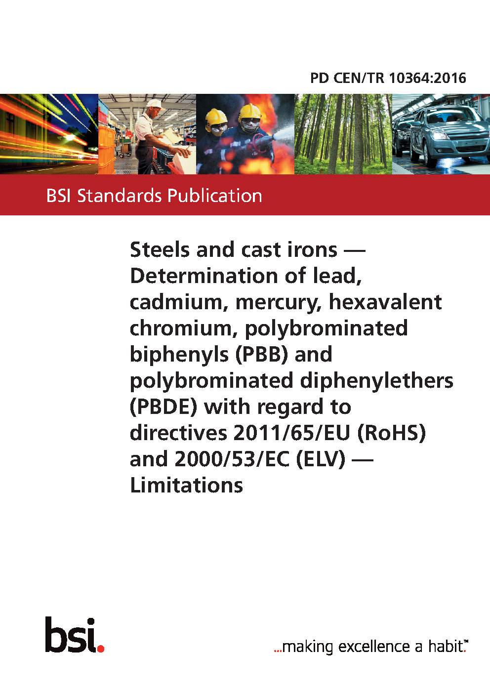 Steels and cast irons. Determination of lead, cadmium, mercury, hexavalent chromium, polybrominated biphenyls (PBB) and polybrominated diphenylethers (PBDE) with regard to directives 2011/65/EU (RoHS) and 2000/53/EC (ELV). Limitations