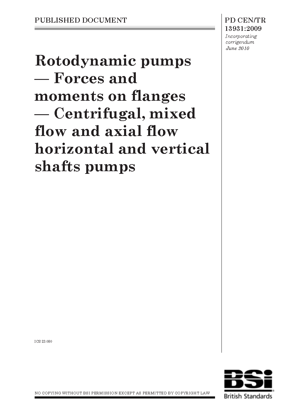 Rotodynamic pumps. Forces and moments on flanges. Centrifugal, mixed flow and axial flow horizontal and vertical shafts pumps