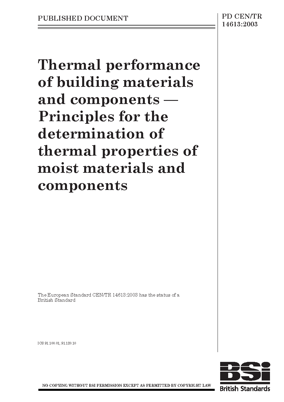 PD CEN/TR 14613:2003