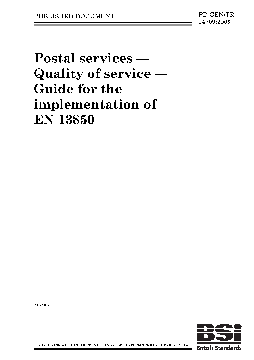 Postal services. Quality of service. Guide for the implementation of EN 13850