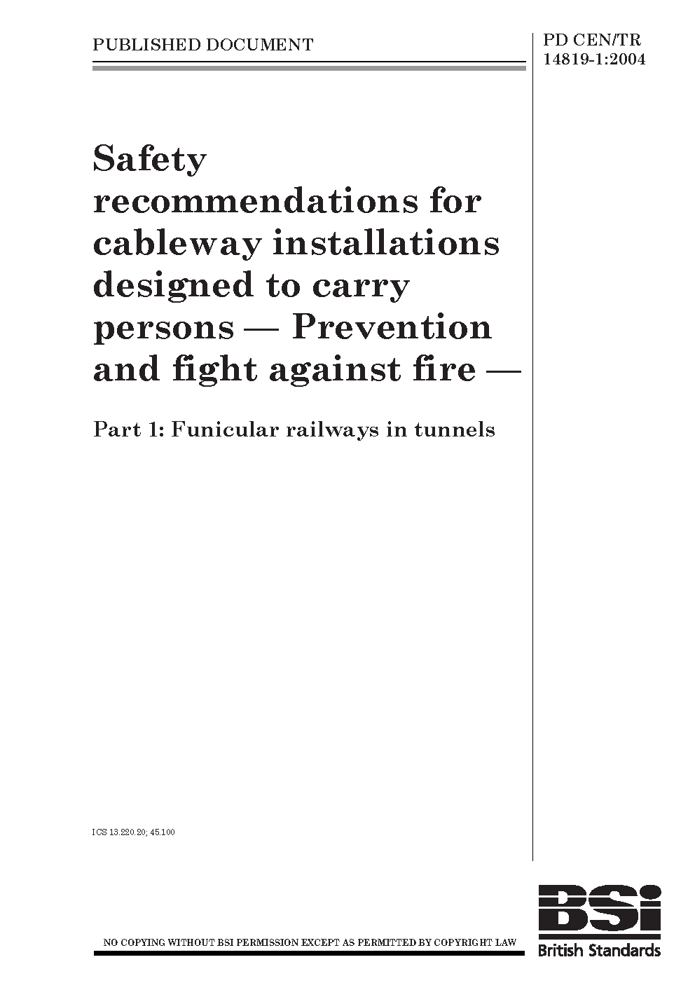 Safety recommendations for cableway installations designed to carry persons. Prevention and fight against fire Funicular railways in tunnels