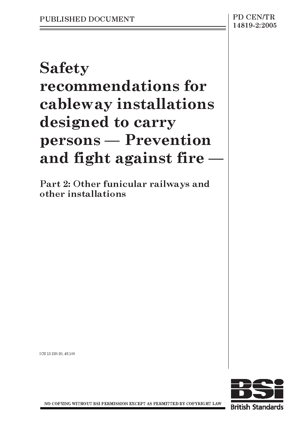 Safety recommendations for cableway installations designed to carry persons. Prevention and fight against fire Other funicular railways other